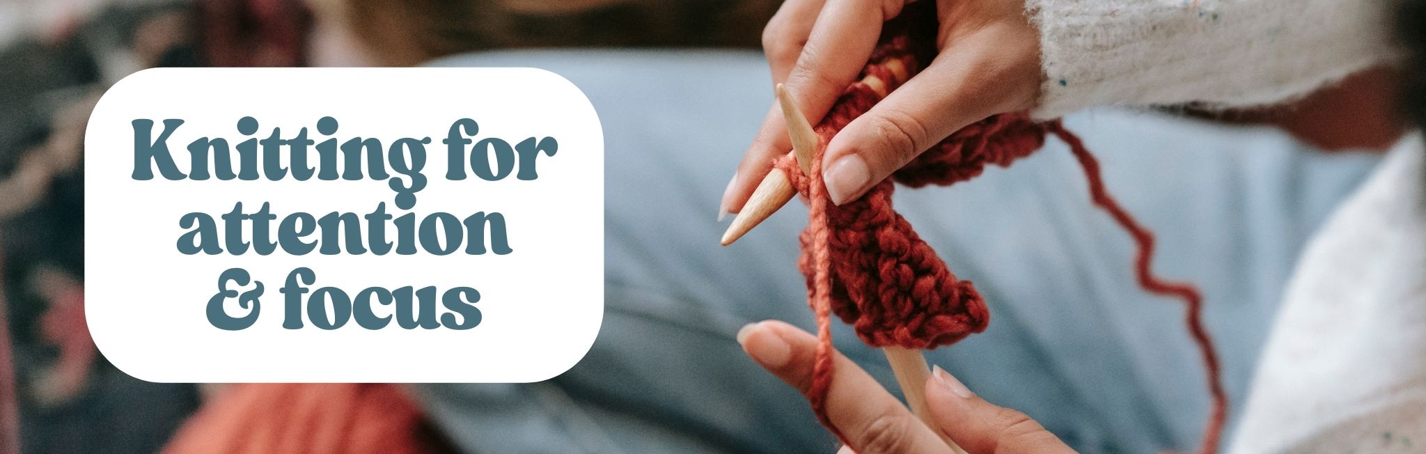 Knitting for attention and focus is an on-demand webinar exploring how knitting (and crochet) can support concentration, attention and mindful awareness, particularly for people who struggle with restlessness, distractibility or overwhelm.